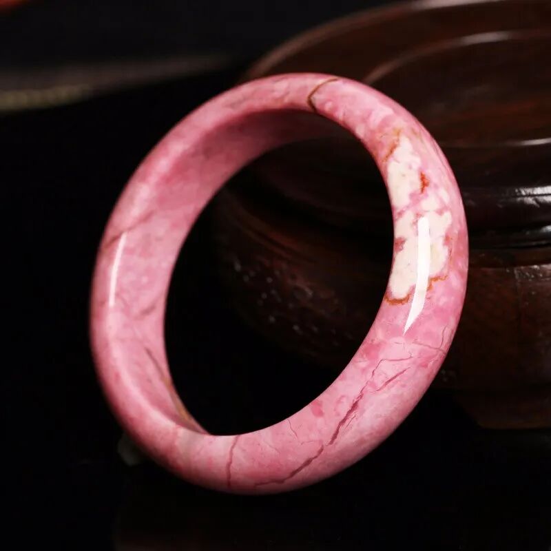 它是一种硅酸盐类矿物,学名叫做蔷薇辉石,常见浅红色、粉红色、紫红色、褐红色,常有黑色斑点和细脉间杂于粉色之间,有时杂有绿色或黄色色斑。