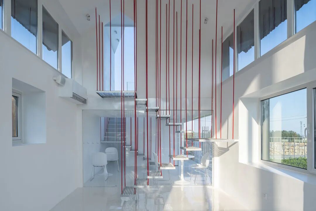 钢筋吊装的楼梯,走起来有一点微微晃动的感觉,就如同走吊桥的体验,完成之后,成了小朋友们特别喜欢的游戏设施。