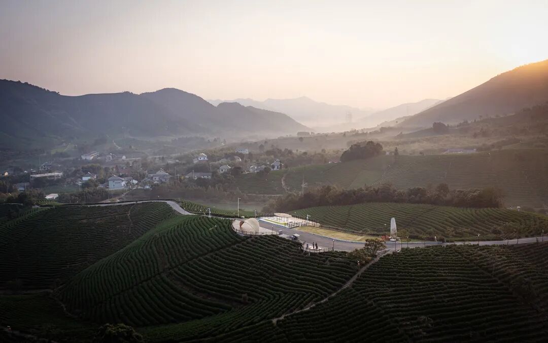 项目位于浙江安吉的茶田中打造了一个茶室和两个竹亭,既具有围合向心的凝聚力,又和谐地融入在当地环境中。这个项目落址于由万亩茶田构成的乡野景观之中。