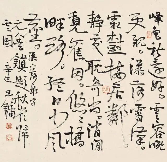 兼具画家与书法家身份的王镛,对书法的理解也很独特,他认为,画脱离不了书法,书法更脱离不了画。所以他的书法,在形态、布局、运笔方面,都可以窥见些许画的影子。