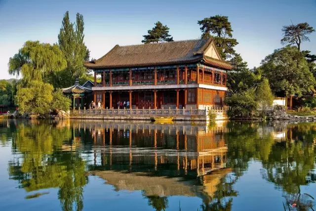 避暑山庄始建于1703年,历经清康熙、雍正、乾隆三朝,耗时89年建成。避暑山庄以朴素淡雅的山村野趣为格调,取自然山水之本色,吸收江南塞北之风光,成为中国现存占地最大的古代帝王宫苑。