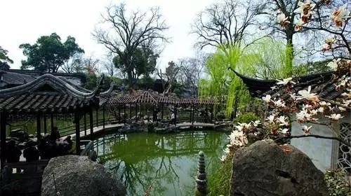 拙政园位于苏州城东北隅(东北街178号),截至2014年,仍是苏州存在的最大的古典园林,占地78亩(约合5.2公顷)。全园以水为中心,山水萦绕,厅榭精美,花木繁茂,具有浓郁的江南地方水乡特色。
