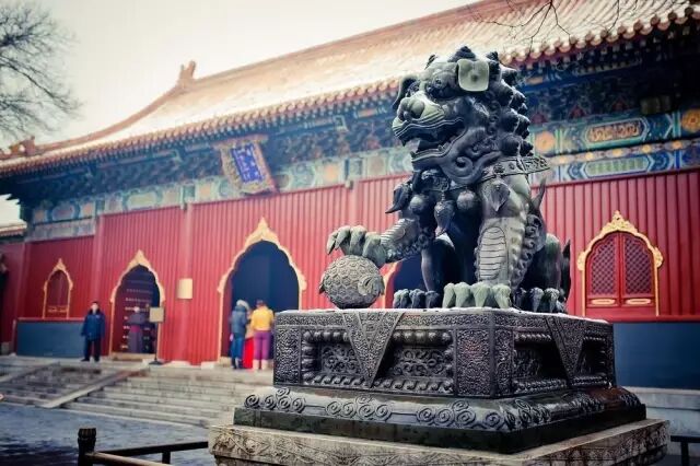 雍和宫位于北京市区东北角,清康熙三十三年(1694年),康熙帝在此建造府邸、赐予四子雍亲王,称雍亲王府。雍正驾崩,曾于此停放灵柩,因此,雍和宫主要殿堂原绿色琉璃瓦改为黄色琉璃瓦。又因乾隆皇帝诞生于此,雍和宫出了两位皇帝,成了“龙潜福地”,所以殿宇为黄瓦红墙,与紫禁城皇宫一样规格。乾隆九年(1744年),雍和宫改为喇嘛庙。