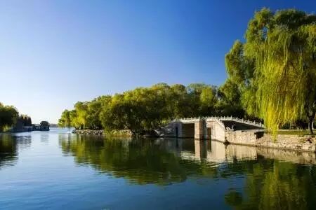 颐和园,中国清朝时期皇家园林,前身为清漪园,坐落在北京西郊,距城区十五公里,占地约二百九十公顷,与圆明园毗邻。它是以昆明湖、万寿山为基址,以杭州西湖为蓝本,汲取江南园林的设计手法而建成的一座大型山水园林,也是保存最完整的一座皇家行宫御苑,