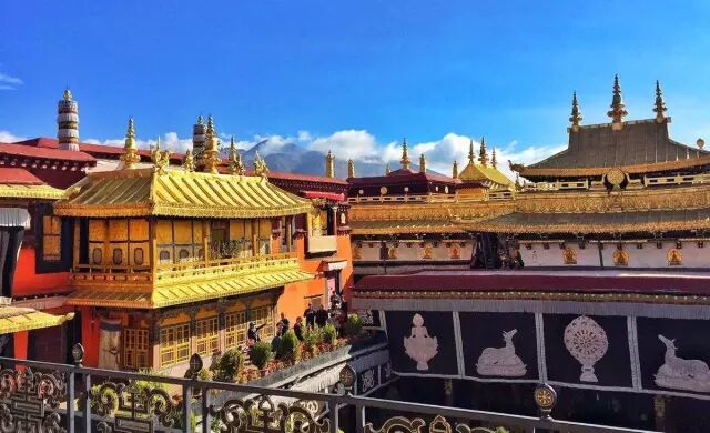 大昭寺融合了藏、唐、尼泊尔、印度的建筑风格,成为藏式宗教建筑的千古典范。