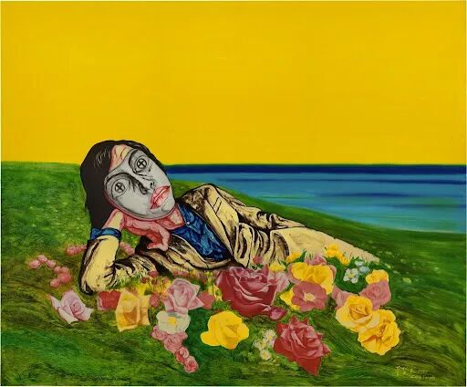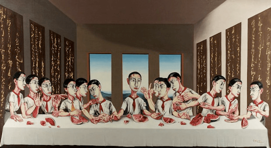 下:曾梵志,《最后的晚餐》,2013 年 10 月在香港苏富比以 1.8 亿港币的价格成交,一度是中国当代艺术品的拍场最高价