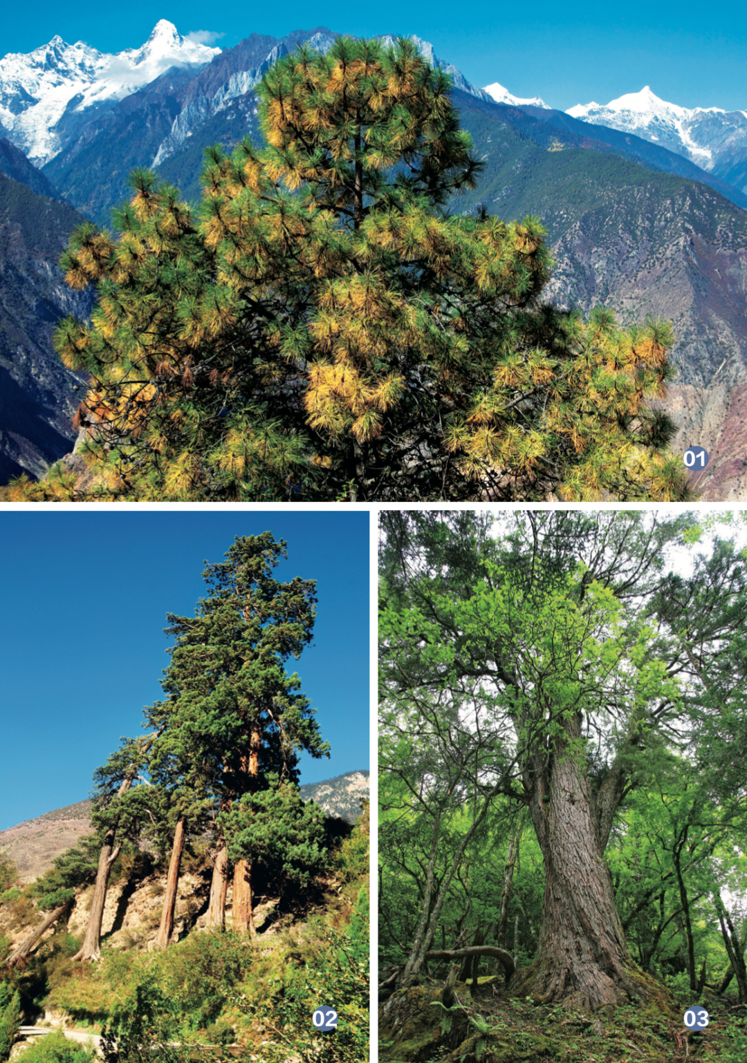 01高山松,02干香柏,03云南红豆杉。图\《自然中国志·梅里雪山》