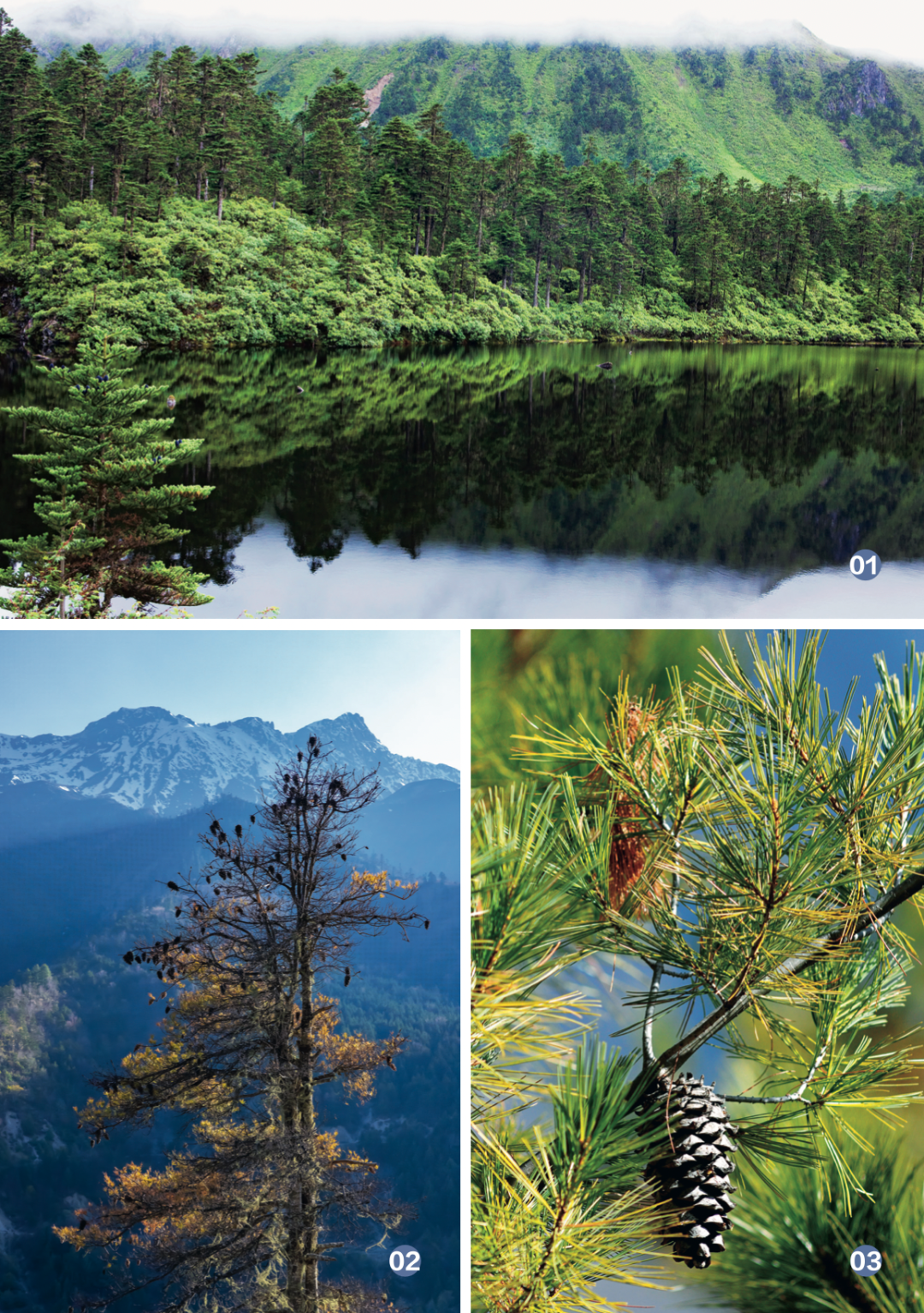 01长苞冷杉;02南方红杉;03华山松。图\《自然中国志·梅里雪山》