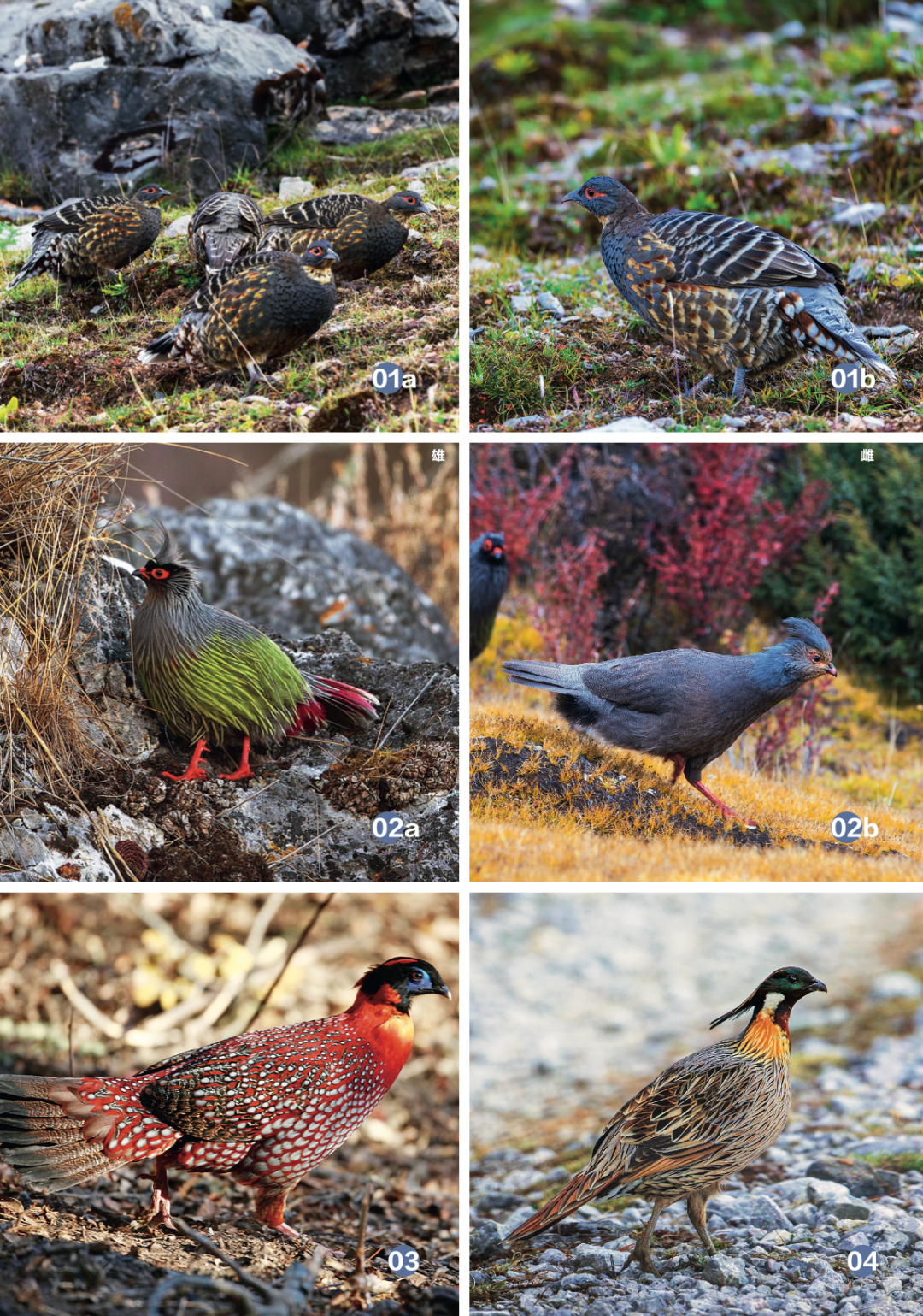 01黄喉雉鹑,02血雉,03红腹角雉,04勺鸡。图\《自然中国志·梅里雪山》