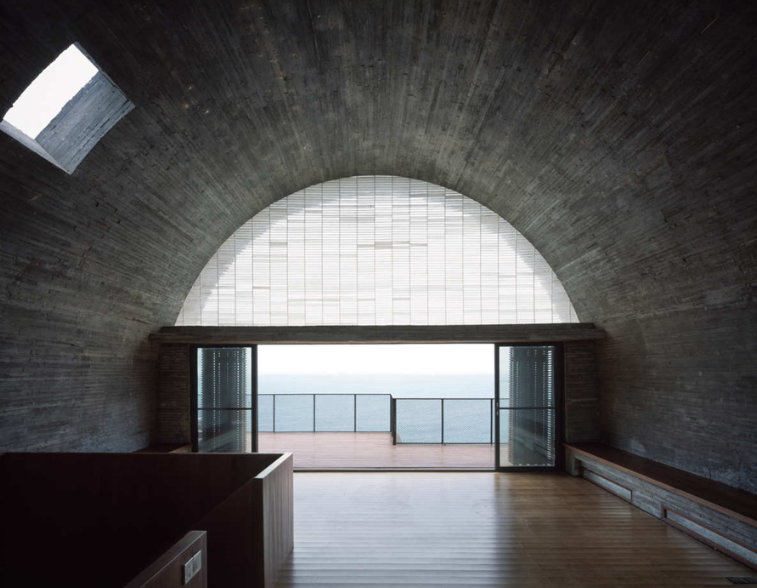 第三层选择了拱形结构作为屋顶,不仅是因为两边承重墙向上汇聚的自然结果,也有利于屋顶迅速排水,最大程度降低漏水和渗水的可能性。