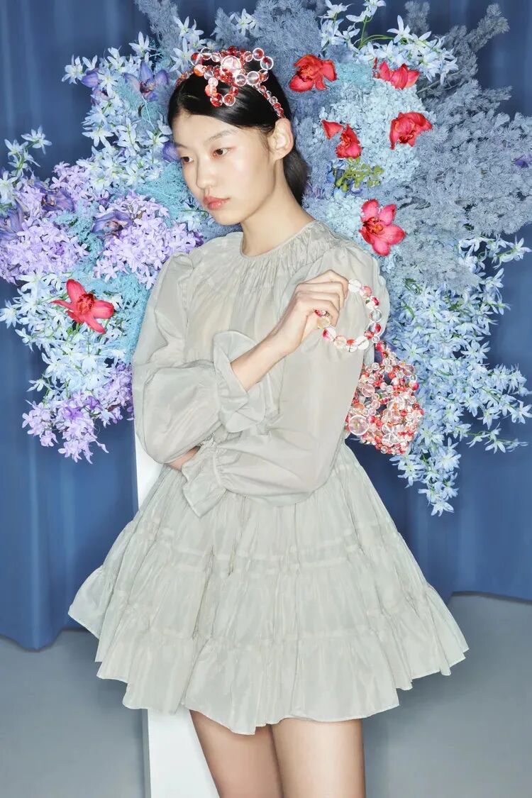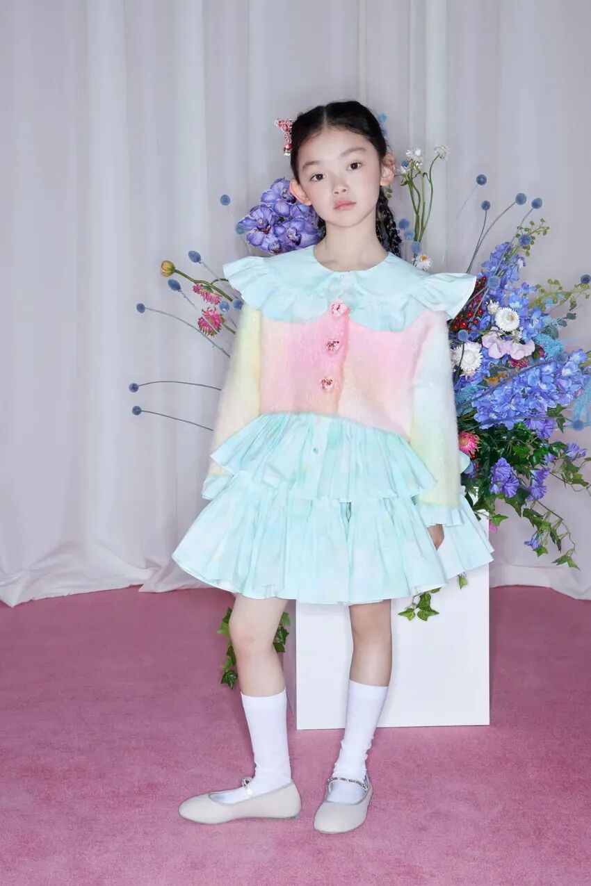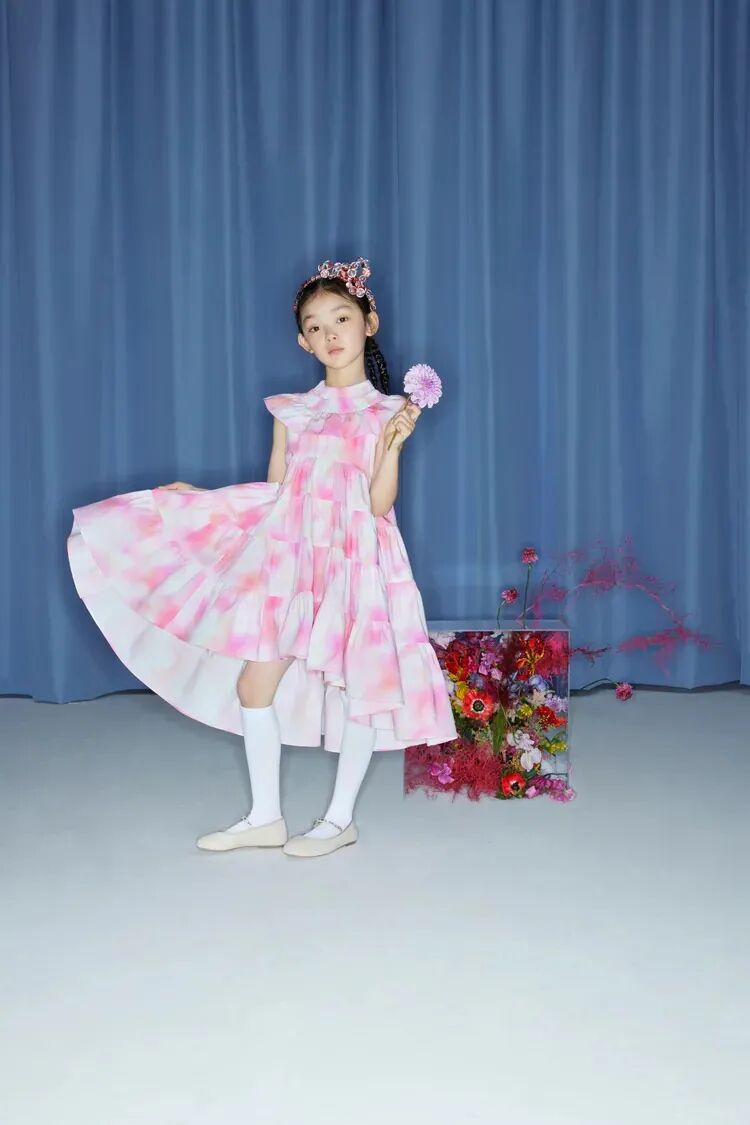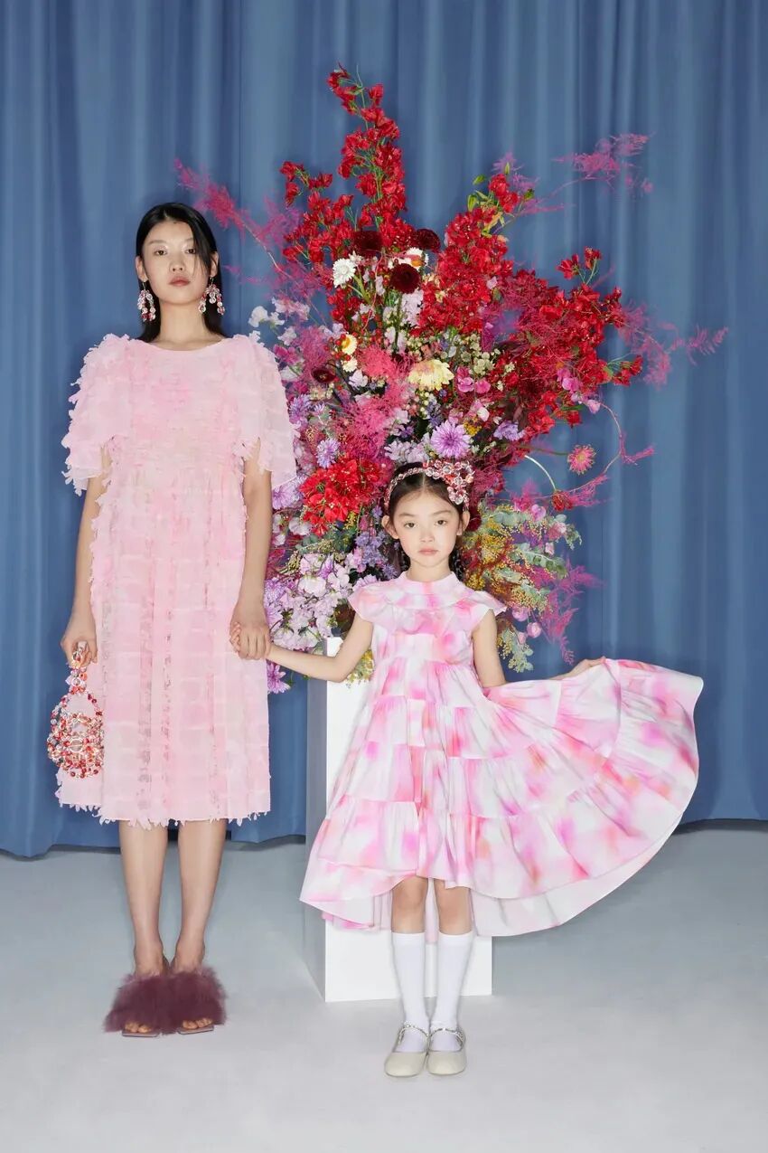 此系列共有22件单品,涵盖女装、男装、童装、配饰,镶嵌着鲜花的珠珠扣子是特别的点缀设计,在各品类中分别呈现。