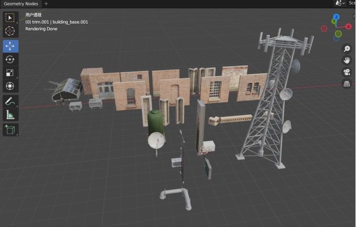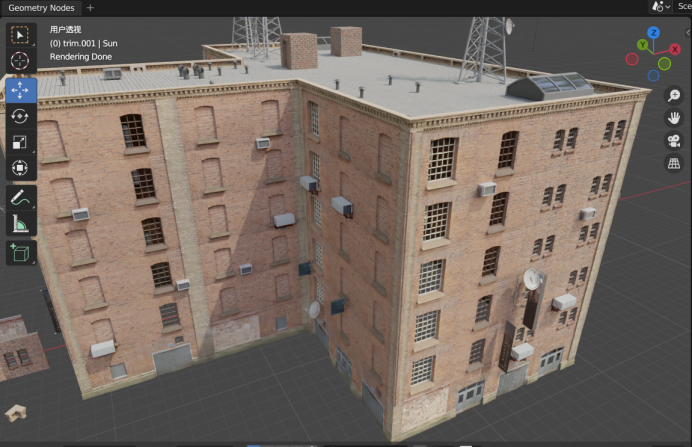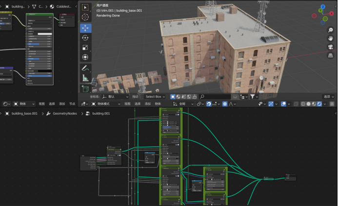 楼房模型通过 Blender 的几何节点完成。