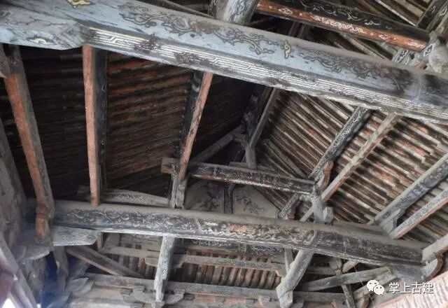 坡屋顶的形式,使得古建筑的顶部出现了一个架空层,太阳光的热量,必须经由两次缓冲与降温:先通过屋顶泥背层进入屋顶内,再经过天花板之上架空层的过渡,才能继续往下,传向地面。