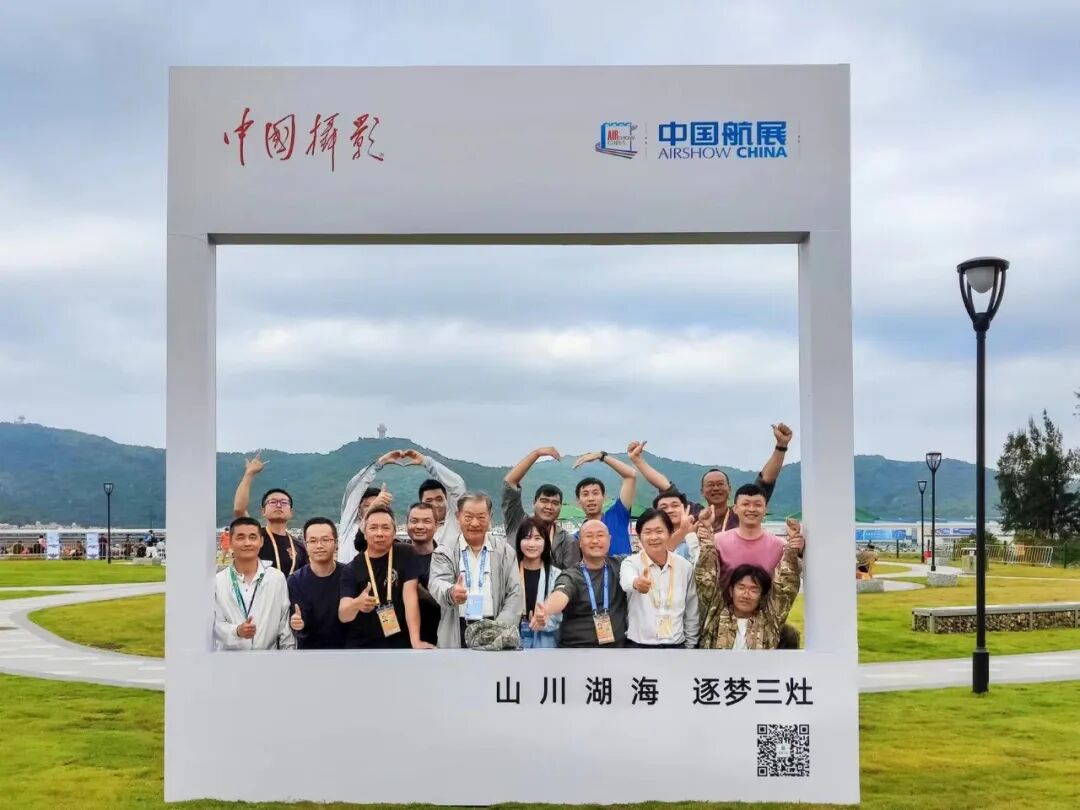 中国航展现场金凤台上的《中国摄影》打卡点,装置引得很多现场摄影师前来打卡,广东珠海,2022年