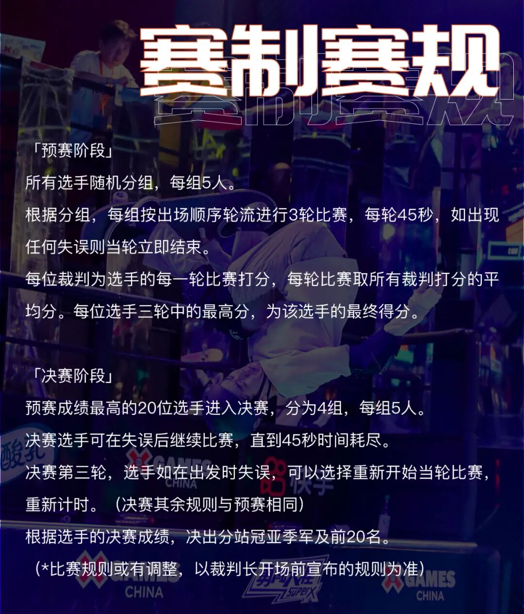 根据赛事规则,四站取三站总积分最高的20名滑手进入总决赛,而入围的选手中既有国家集训队的队员,也有各地实力强劲俱乐部、专业队伍和中外个人选手参与其中,因此这场总决赛也堪称是中国滑板最顶尖的对决。