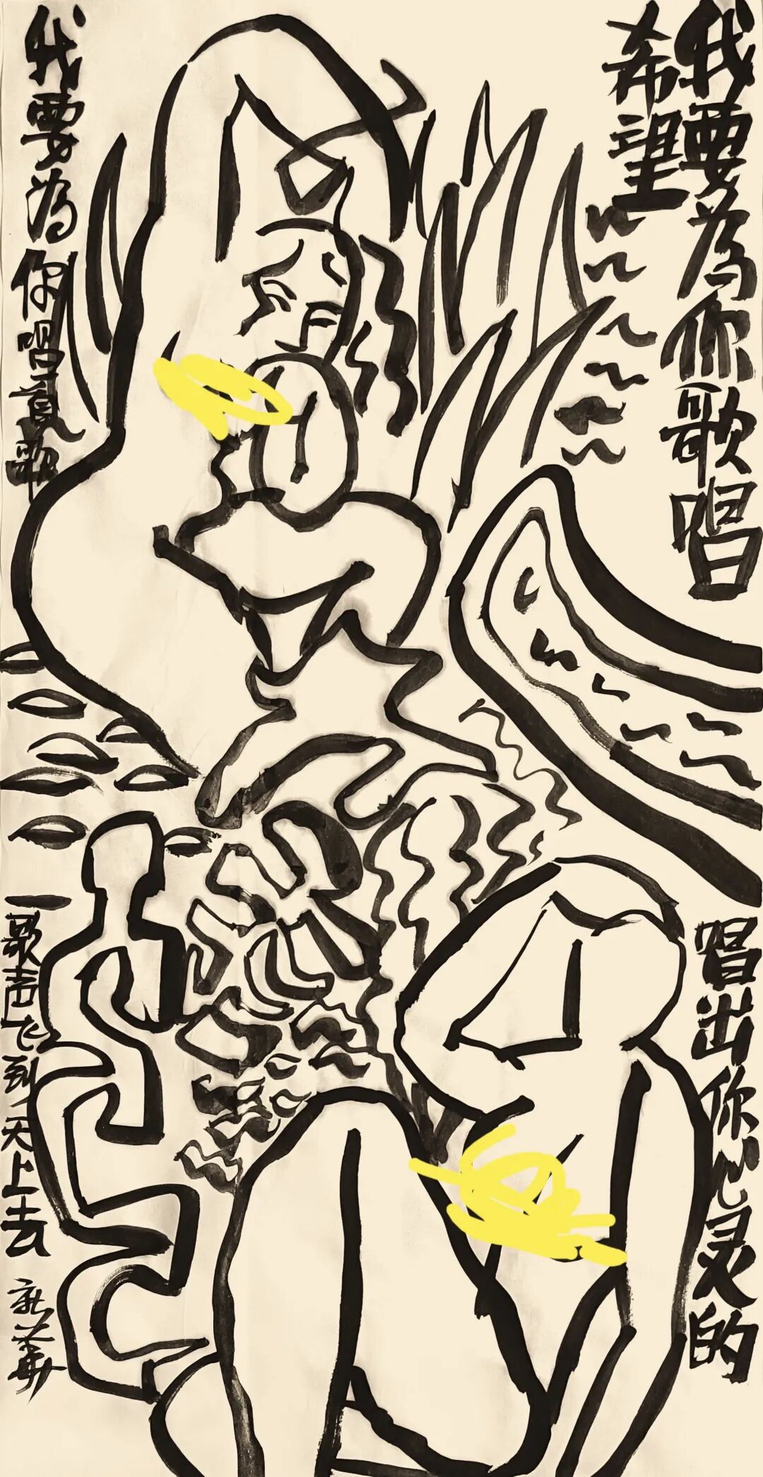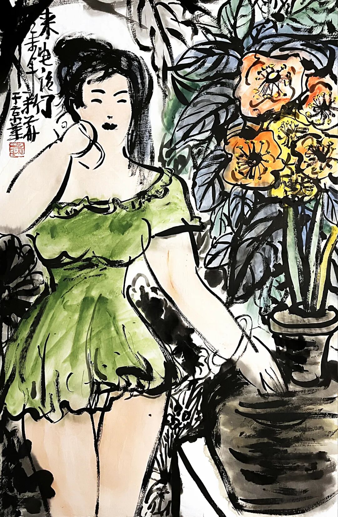 我的绘画是热烈和阳刚派,我以为如果艺术没有像太阳一样照耀和温暖着人类的精神,给人类精神以自由的生发和成长,哪还要艺术干什么?我的绘画,正是要表达岀自由的阳刚的生命的力量。我的绘画是生长的,是开放的,进取的,是精神层面的表达。我不再是古贤的小学生,也不会去简单地再现生活。我要从自由精神的层面升华和強化今人的绘画,展示人类审美进程里今天的面貌。我会率性地表达自我,发展自我,深刻自我,強健自我,成为自我,做自己时代的艺术家。