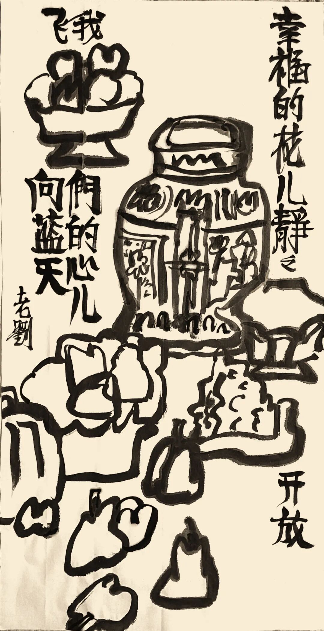小时候上学,路过黄土冈,南方的黄泥胶重,可使人寸步难行。老师的笔不离纸,使我想起黄宾虹的“泥里拨钉”,我刘新华的“泥里拨靴”。黄泥越粘越多,最后把靴粘掉。一脚泥一身泥回家挨板子。在泥中歪歪斜斜的状态就是我写字的状态。好在没有人揍我了。在武汉我听过一次男高音歌唱家吴雁泽的无音响演唱会,那声音在音乐厅振聋发聩,穿透力只击灵魂,让人浑身起鸡皮疙瘩。这种感觉我一直想在练条中出现,遗憾啊。