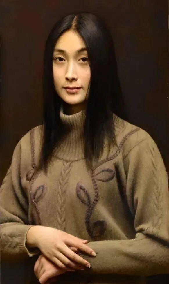 冷军的超写实画作目前无法超越,颜料厚重得当,近前一看笔触明显,整体的细微的真实感无人可及,无人敢与之媲美。