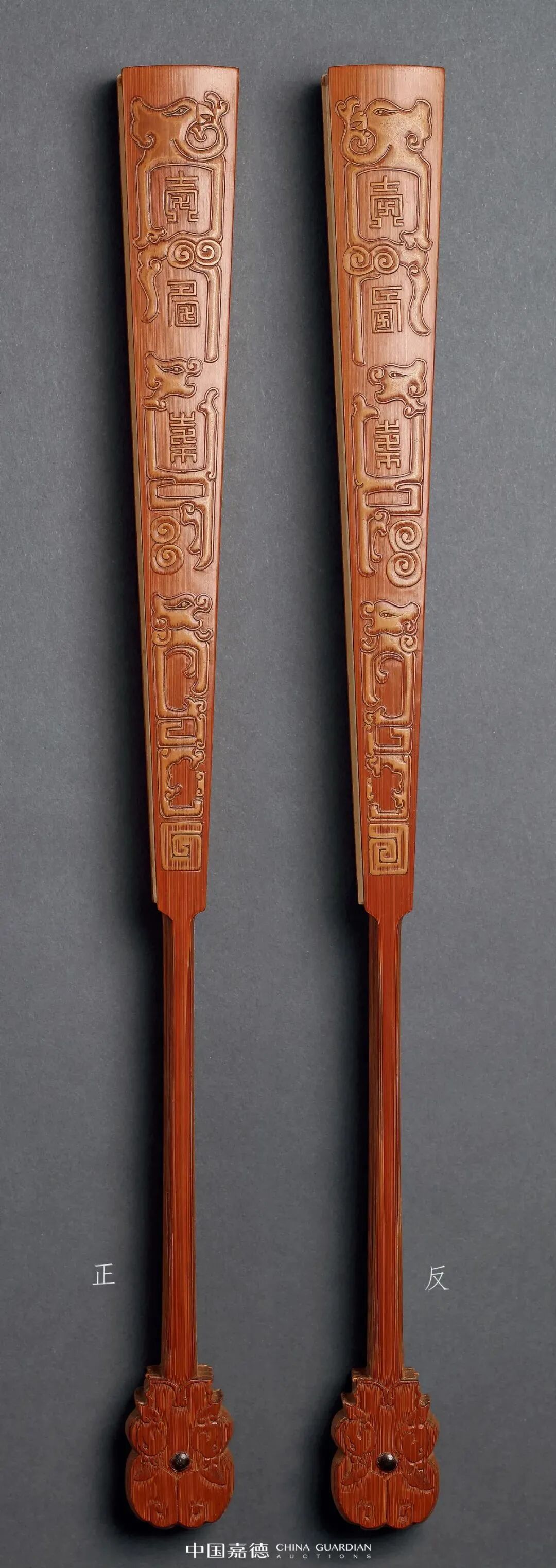 清乾隆 留青夔龙凤纹包袱头大扇骨 L 34.3cm