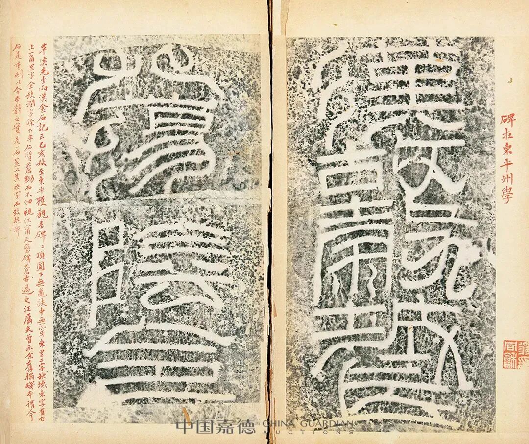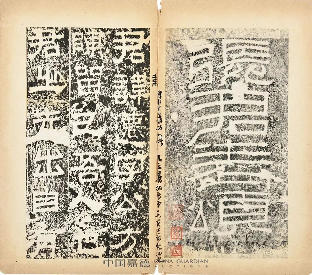 “古籍善本 金石碑帖”本场推出“榴花馆集藏古籍善本金石碑帖”专题,包括清康熙二十八年(1689)鱼计亭刻本《三百词谱》、燕京大学图书馆旧藏的清初期刻套色印本《芥子园画传初集》,皆为古籍中稀见之物。翁同龢双钩并批校清嘉道间拓“犁种”不连本《汉张迁碑》,何焯、罗振玉题跋宋拓本《汉史孝山出师颂帖》底本精良,又经名家递藏考释,价值倍增。民国间上海影印宋版藏经会影印本《影印宋碛砂藏经》为民国时期佛教界一大盛举,内容丰富,完整无缺。此外,民国间上海涵芬楼影印本《四部丛刊》三编附《二十四史》煌煌巨制,堪称学者必备之秘藏。