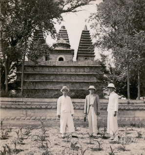 杨廷宝(中)与林是镇(左)、刘敦桢(右)在北平真觉寺金刚宝座塔勘察