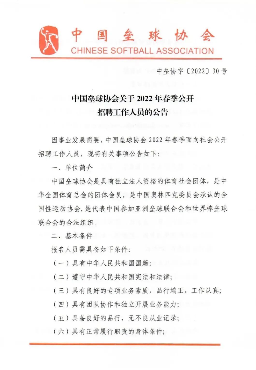 「中国垒球协会」招聘:体教融合、品牌企划、市场营销、商务运营事务主管 | 体育圈招聘