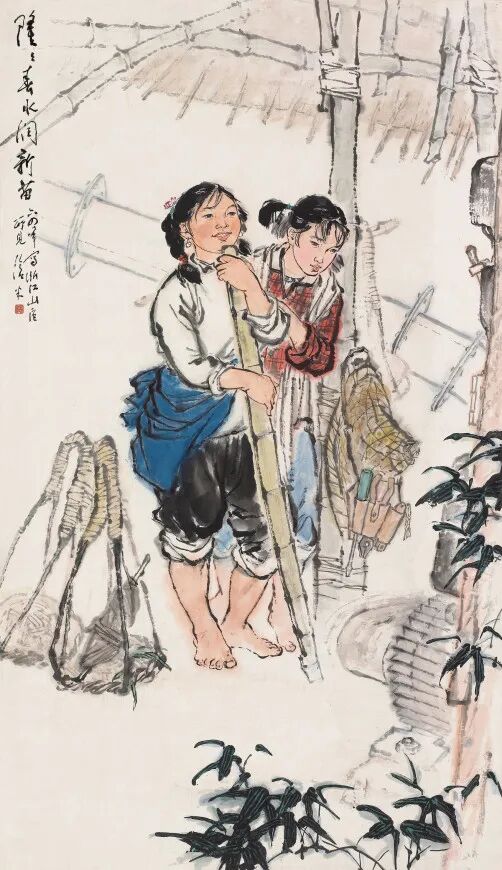 隆隆春水润新苗 周沧米 中国画 124 cm×71 cm 1964年