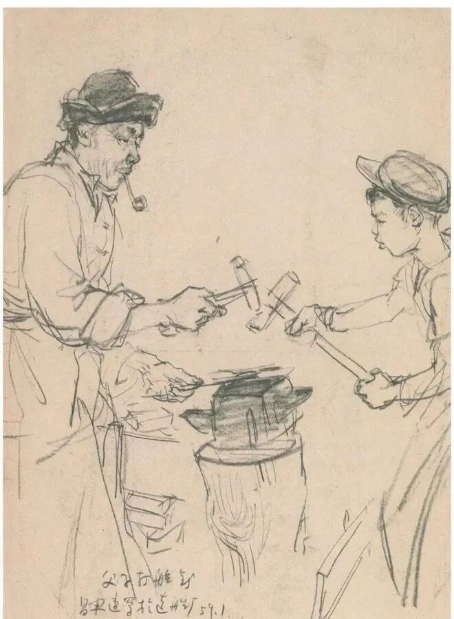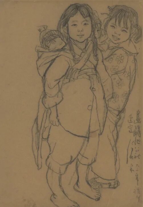 姐弟仨 周沧米 速写54cm×38cm1963年