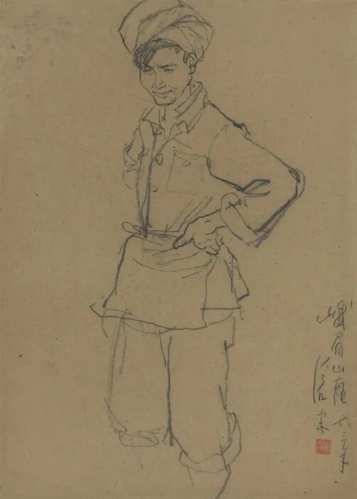 龙池山区男子 周沧米 速写54cm×38cm1963年