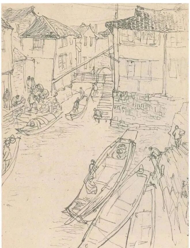 峡江行舟 周沧米 速写18cm×13cm1963年