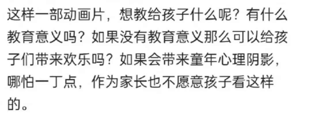 姑且不论是不是炒作,这位“家长”都遭到了网友们的集体声讨。动画片是小孩子专属,动画片要有教育意义等观点充满刻板印象。
