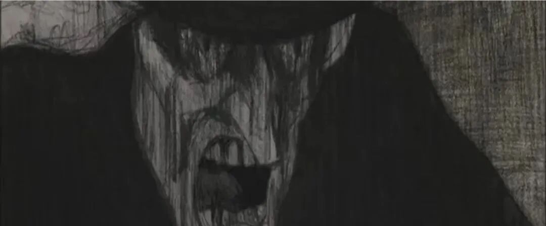 人物丑陋扭曲,画面压抑狰狞。