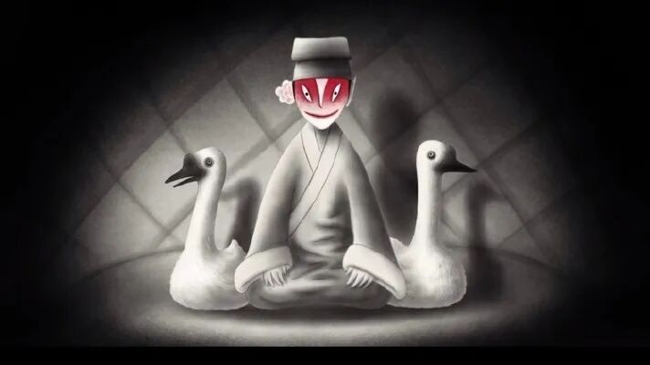 全片采用水墨画风,像默片一样用文字完成对话。