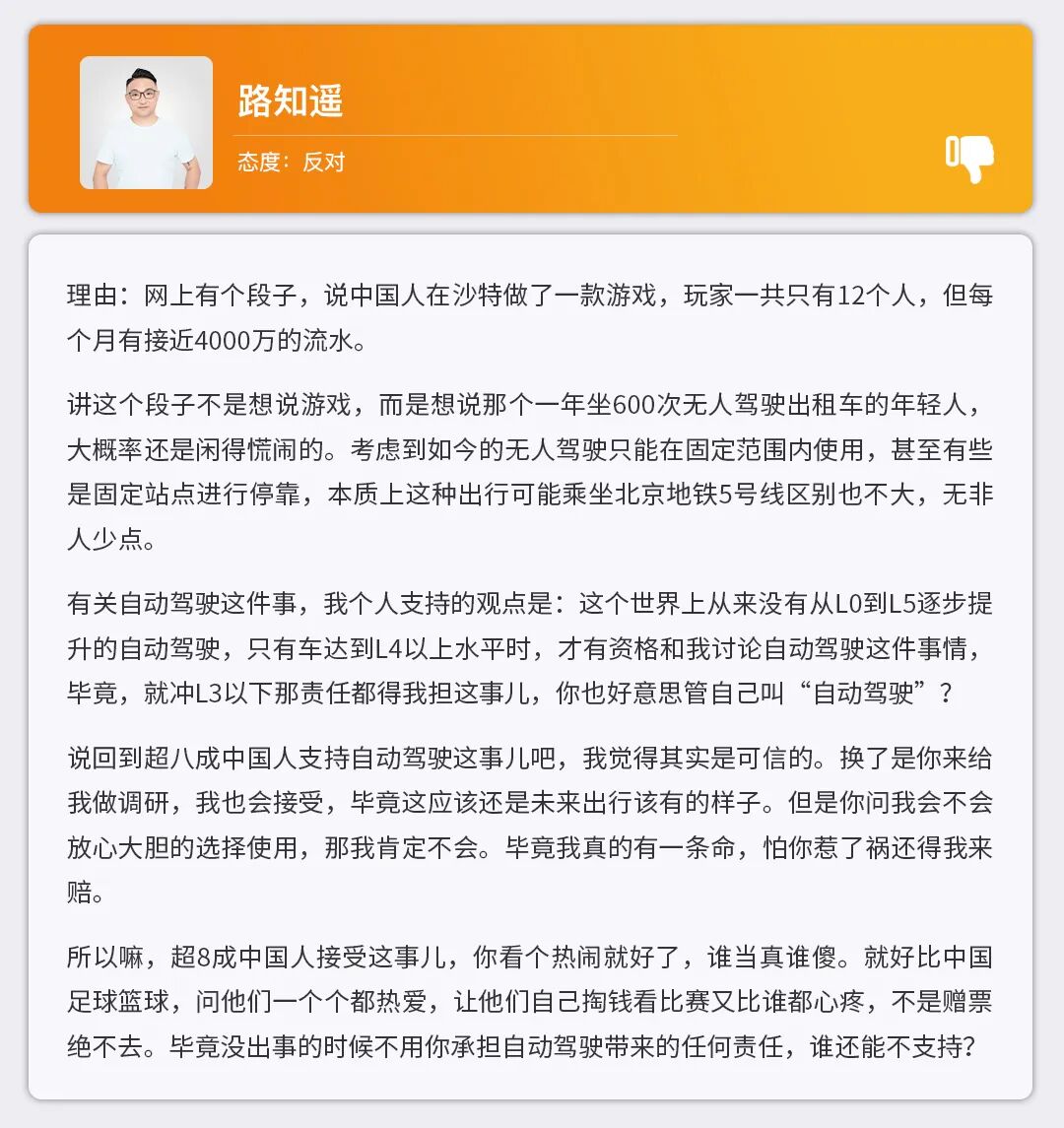 看完这个调查,办公室的小伙伴也就如何看待”中国民众 8 成拥抱自动驾驶“这件事表达了看法,我们一起看看吧!