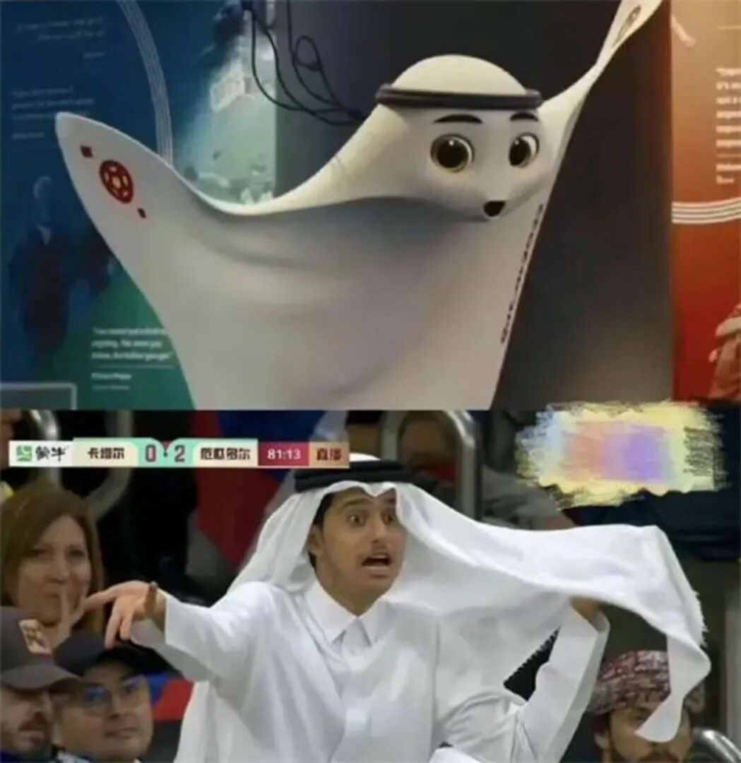 世界杯上,卡塔尔的白色头巾被网友称为“饺子皮儿。