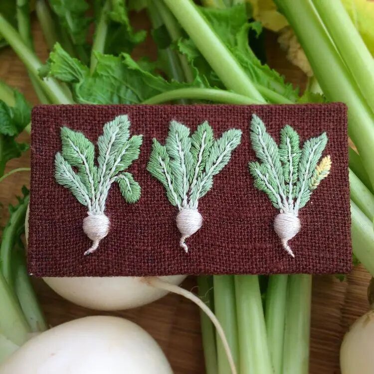这些逼真的蔬菜刺绣作品,让许多人爱吃蔬菜的人,都垂涎三尺,恨不得亲口咬上一下,接下来,就让我们一起来欣赏一下这位在布面上种菜的刺绣艺术家,都制作了哪些精彩的蔬菜刺绣作品吧。