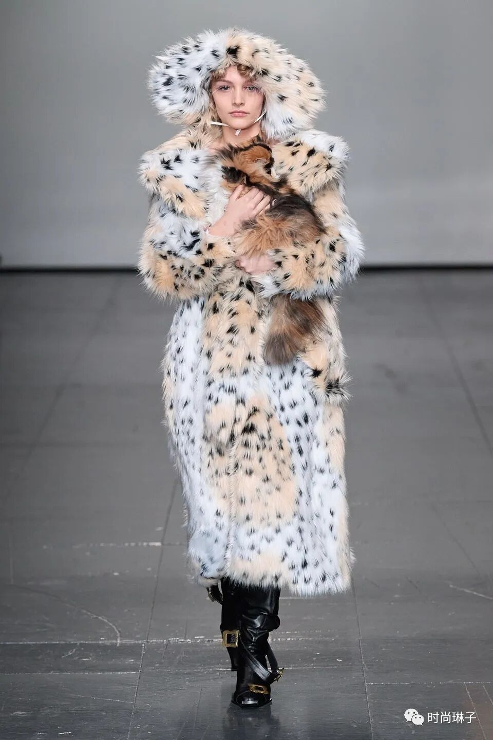 在今年的伦敦时装周上,中国设计师品牌Yuhan Wang全新系列时装秀的亮点一定是她的猫,模特身穿温暖的人造皮草大衣,怀抱猫咪登场,无疑为该季作品带来了十分可爱的气息。