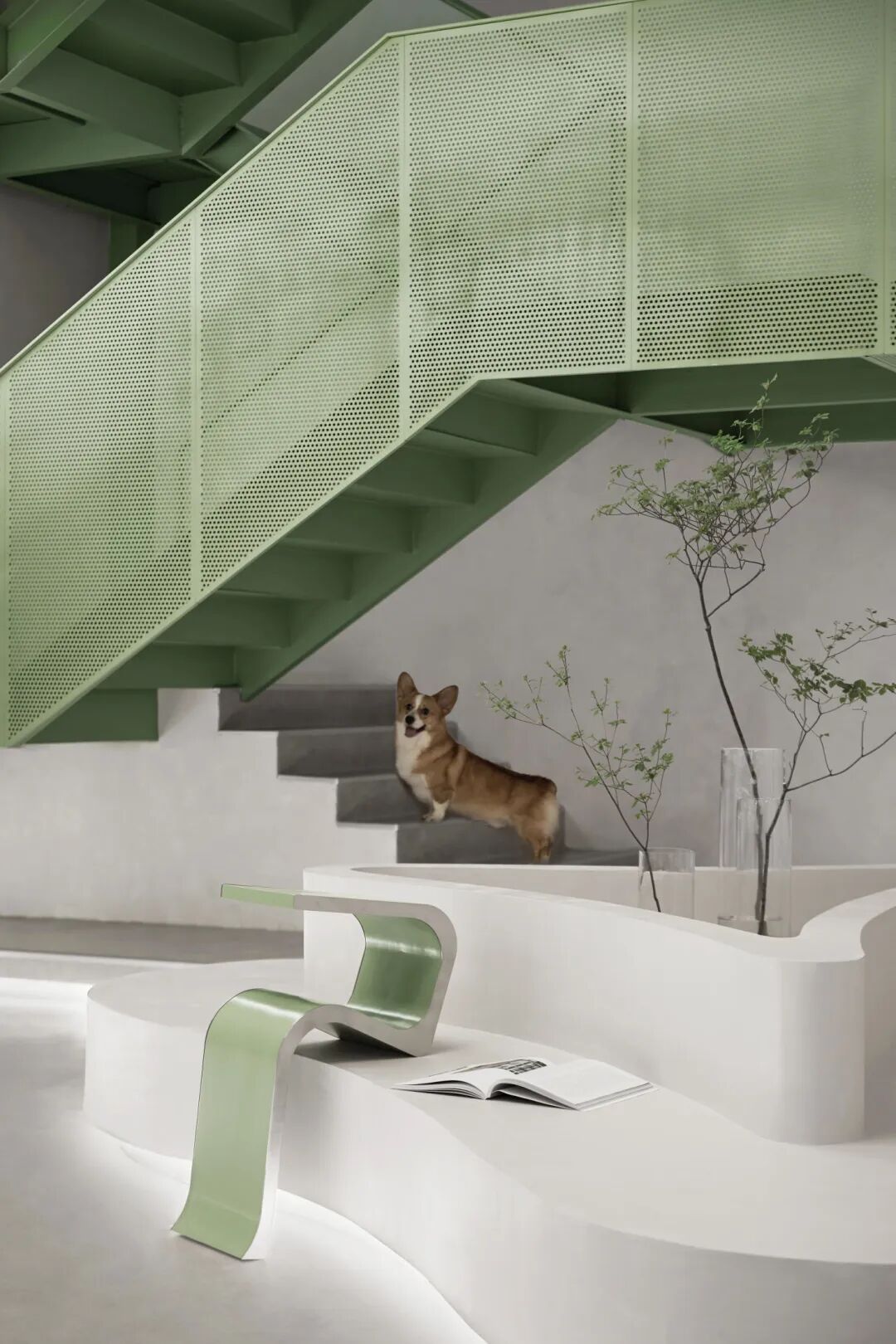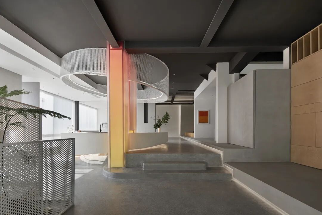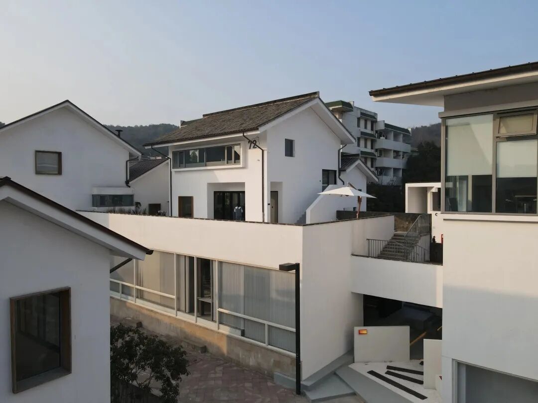 工作室位于杭州西湖区象山艺术公社内,园区内分布错落着的白色建筑群,远处山群重叠呼应,身置其中,感受着自然与建筑间的对话呼吸。