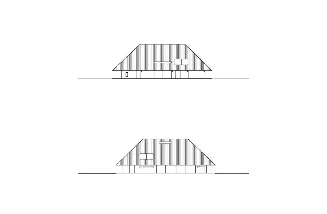 如恩在二楼的设计上延用了坡屋顶,具有“庇护”意义的同时,或将公共与私人空间进行划分,或模糊两者的边界。卧室均位于更为私密的二楼,隐秘于屋顶的山墙之下。从外部看去,整栋楼仍然像一座四面坡屋顶的独栋平层。天窗、卧室与阳台间的大面积玻璃墙,将视野向外延伸,引入室外景观。