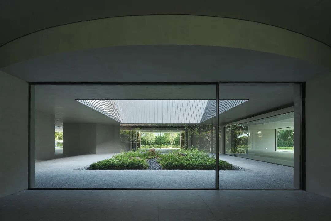 一楼的栖居空间与自然相互对话。通透的玻璃墙面使所有的空间与内外花园连接起来。如恩旨在将公共区域的视觉通透性最大化,包括:客厅、开放式厨房、餐厅及书房。这样,无论居住者立于何处,都能在茂密植被的环绕下,望向中央的纪念花园。