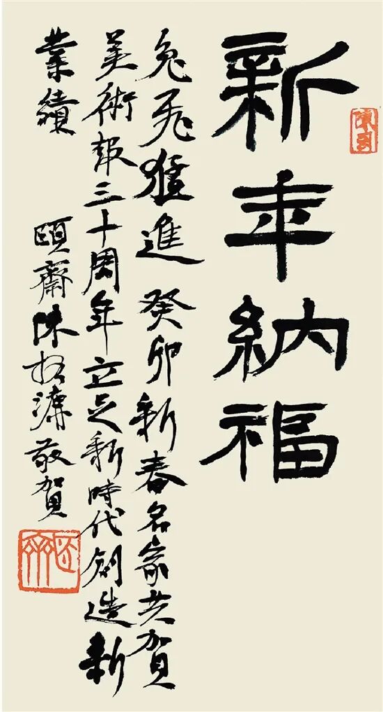 欣闻《美术报》创刊30周年,在农历兔年新春佳节临近之际,谨此献上热烈祝贺和新春祝福!祝愿书画艺术界及广大美术报读者兔年吉祥!“笔永健,艺常青”!