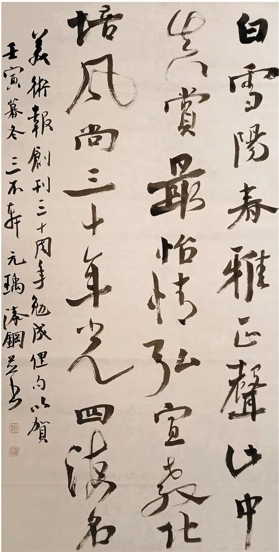 值《美术报》创办三十周年之际,祝愿《美术报》特色更加鲜明,为推动全国书法事业与美术事业作出更大的贡献,也祝愿《美术报》读者朋友吉祥安康!