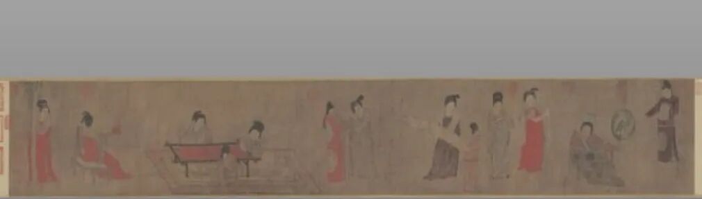 取材于现实生活中贵族妇女的行乐活动,具有强烈的时代感,从而迎合了中晚唐时期大官僚贵族们的审美意趣。其作品在张扬唐王朝繁华兴盛的物质生活的同时,亦揭示了贵妇们极度贫乏的精神世界。此图中嫔妃们体貌丰腴,衣饰华丽,但她们面含幽怨,举止慵倦,毫无生气。