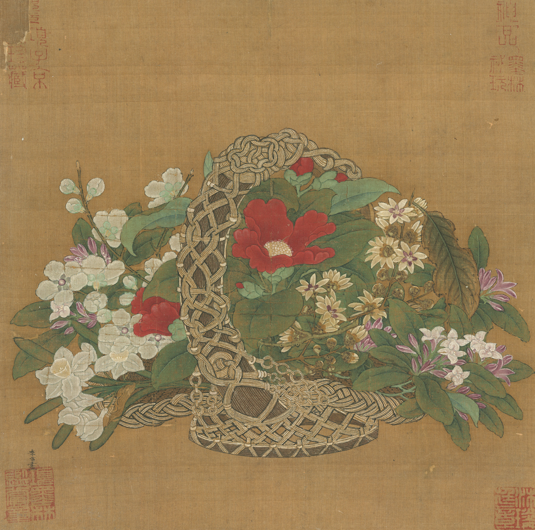 这一篮花虽然没有杏花,但嫣红姹紫的气氛,足以反映当时宋朝爱插花的情形。