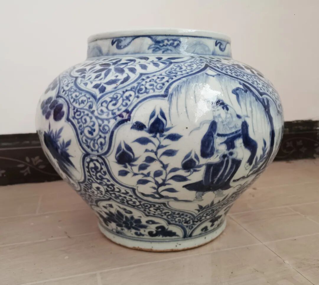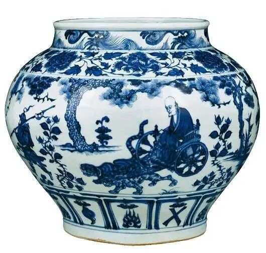 元青花“鬼谷子下山”罐在2005年伦敦佳士得秋季拍卖会上创造了折合人民币2.3亿元的高价。为什么它能拍出如此高价?首先,它是先辈文化的结晶,涵盖了人文、经济、历史、艺术等诸多方面,形成了一个高不可攀的地位,进而才形成了一个高不可攀的价钱。这个价钱当时折合成黄金来计算,约合2吨黄金。尽管近些年来大量的中国艺术品都在不断刷新2.3亿元这个纪录,比如在英国创造了5.5亿元人民币纪录的清乾隆粉彩镂空套瓶,但它只能折合黄金1800公斤,还差200公斤。所以在我心目中,依然认为青花“鬼谷子下山”罐是世界纪录。