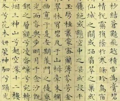 楷书笔意在字间的表现,不一定要写出牵丝连带,而是要有空中动作,要讲究笔势。可以看看智永、唐人抄经、大字阴符经、赵孟楷书等等明以前的墨迹,欧书千字文对楷书也能有一定借鉴。至于欧楷本来面目应该是怎么样?可以参考翁志飞先生所临的九成宫,或者这种欧楷面目的唐人抄经。