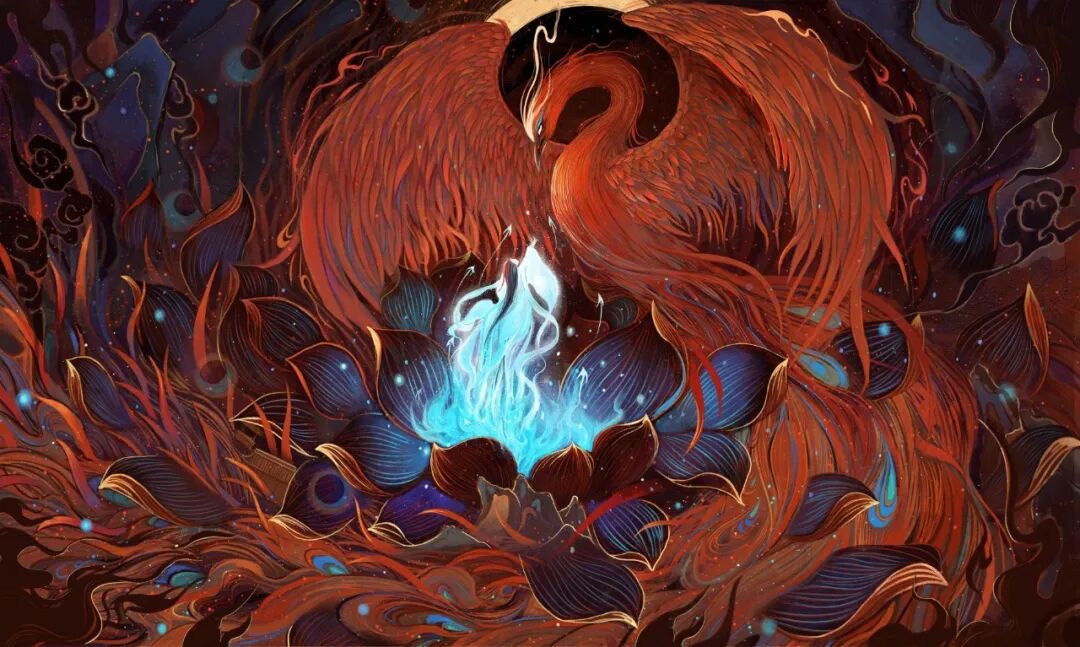 中日妖怪大展中的朱雀是来自插画师舍溪的画笔之下,因朱雀被认为能接引死者灵魂上升于天,舍溪便画出了让天地之灵救赎孤独的亡魂~诞生了下面这幅完美的作品。