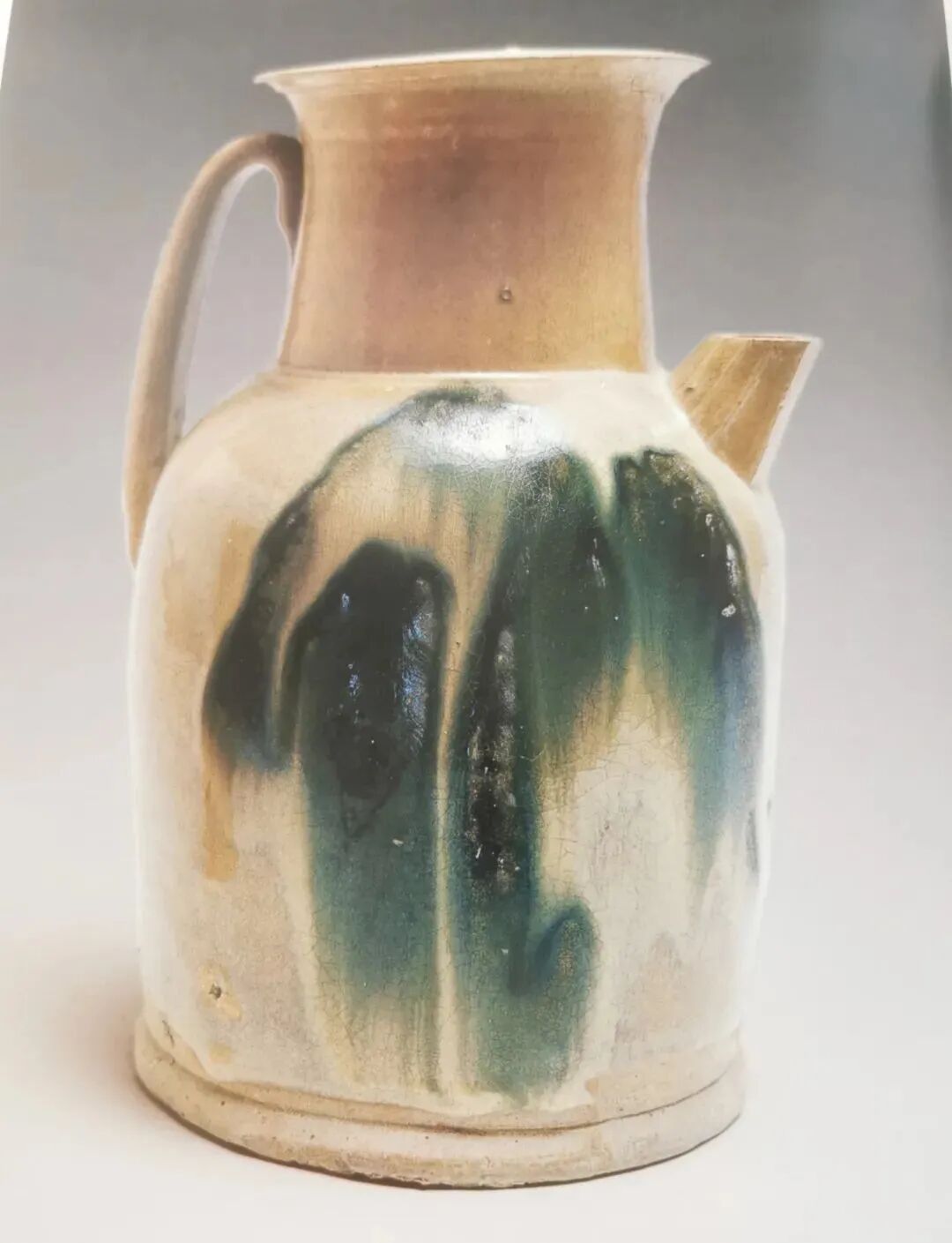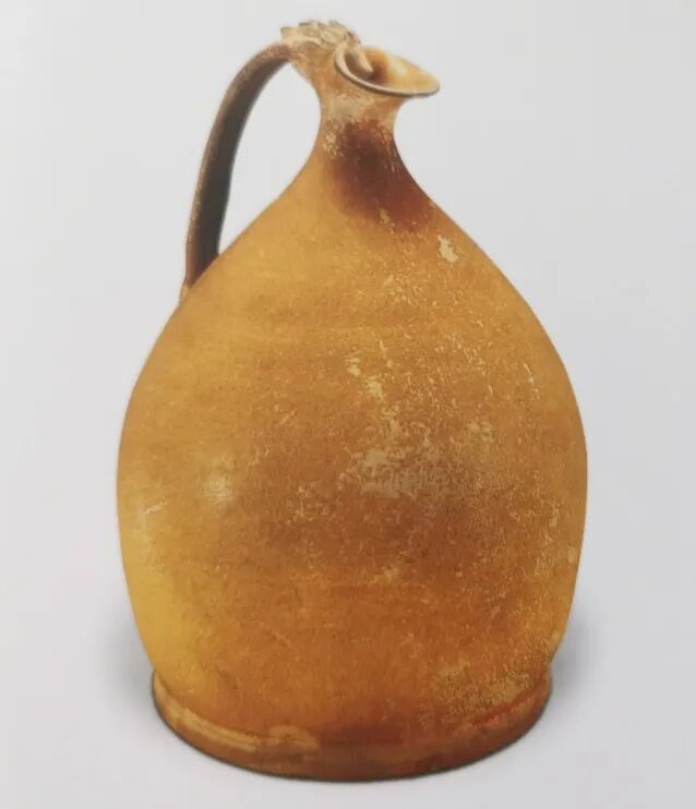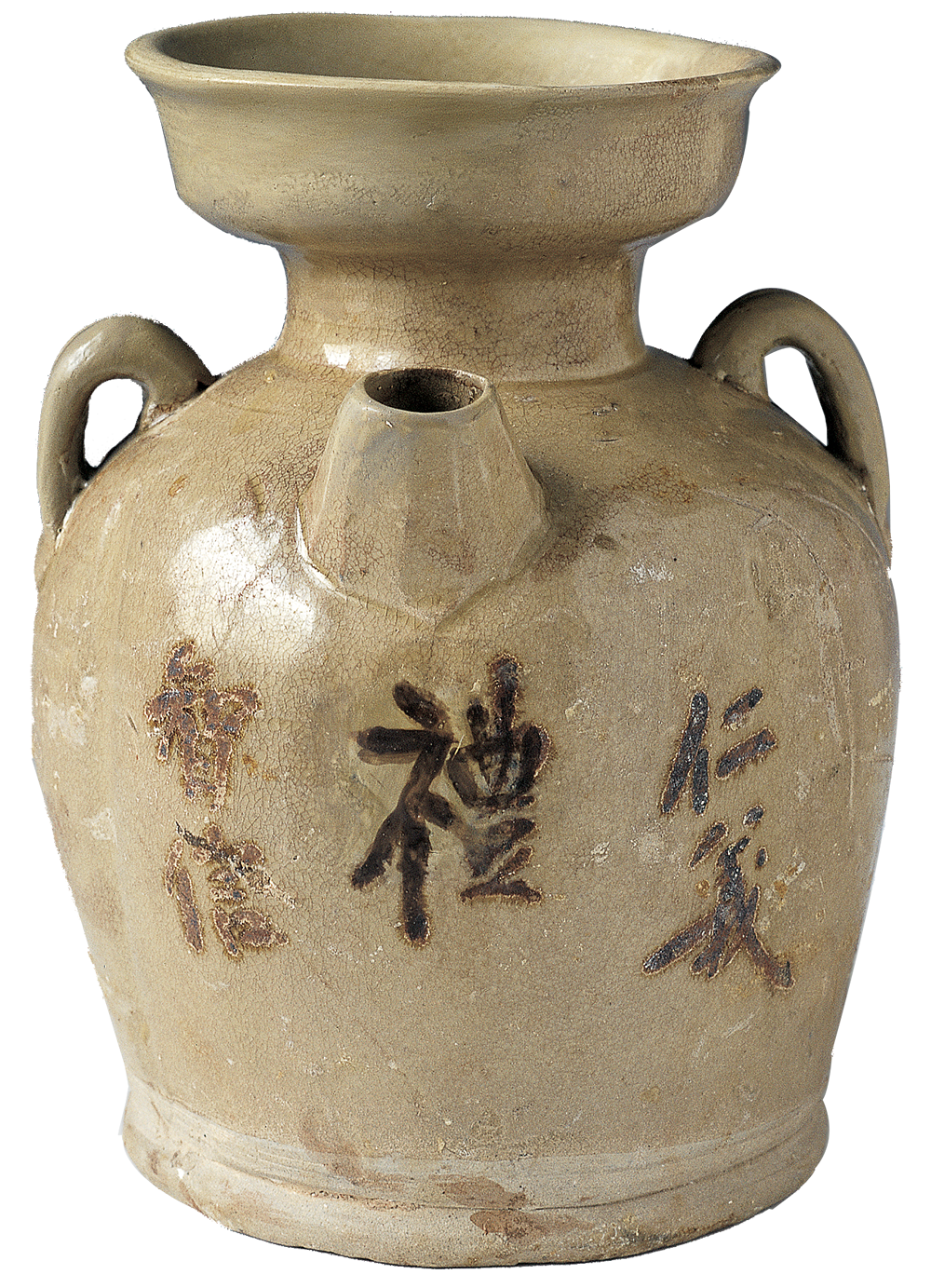 ▲唐 青釉褐绿彩“仁义礼智信”题记壶