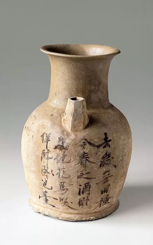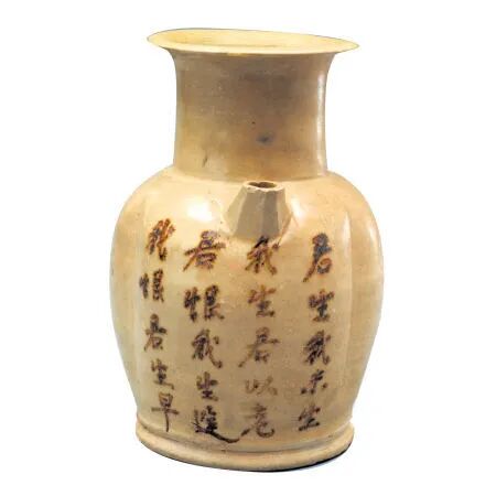 ▲长沙窑青釉褐彩“君生我未生”诗文壶
