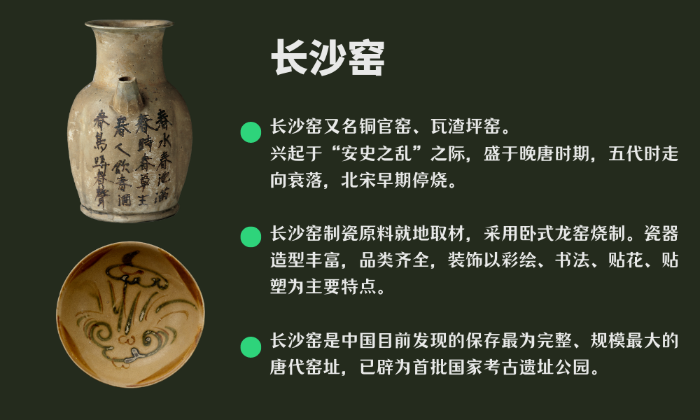 唐代长沙窑瓷器创烧了釉下彩与釉中彩瓷器。